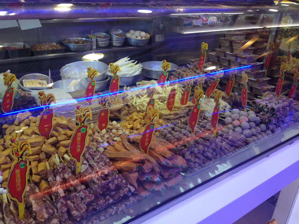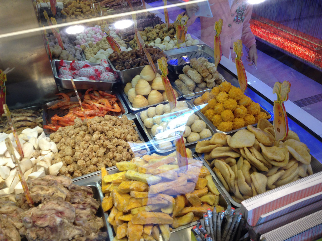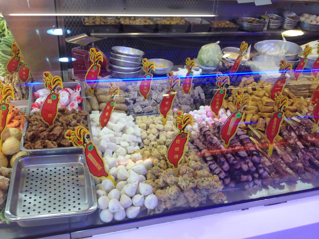 串に刺さったタコや肉、各種練りものなどもあります。