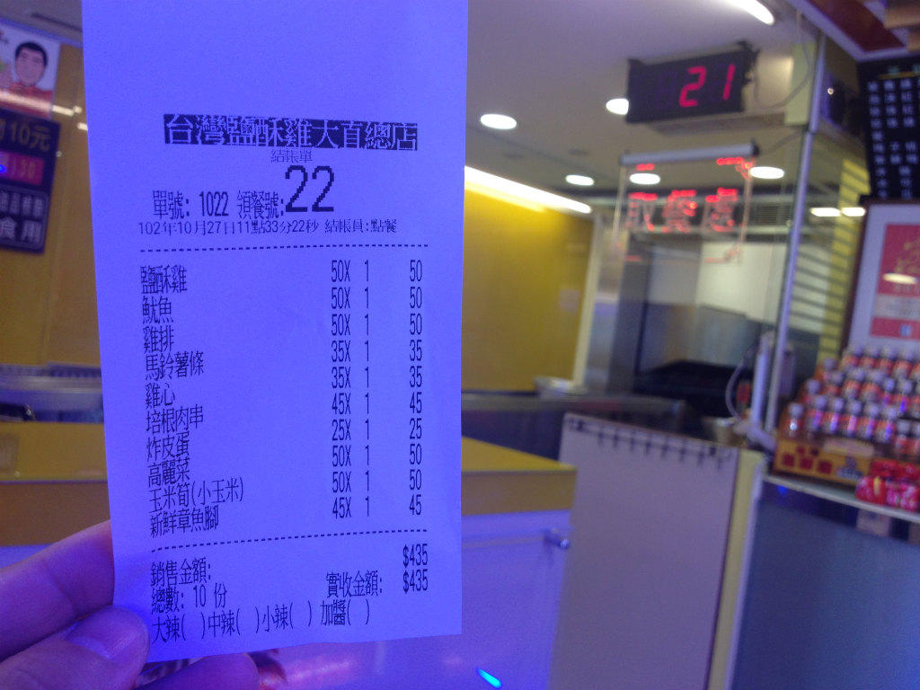 夜市で買うにはちょっと敷居が高いので、こういう店舗で気軽に買えるのはいいですね。