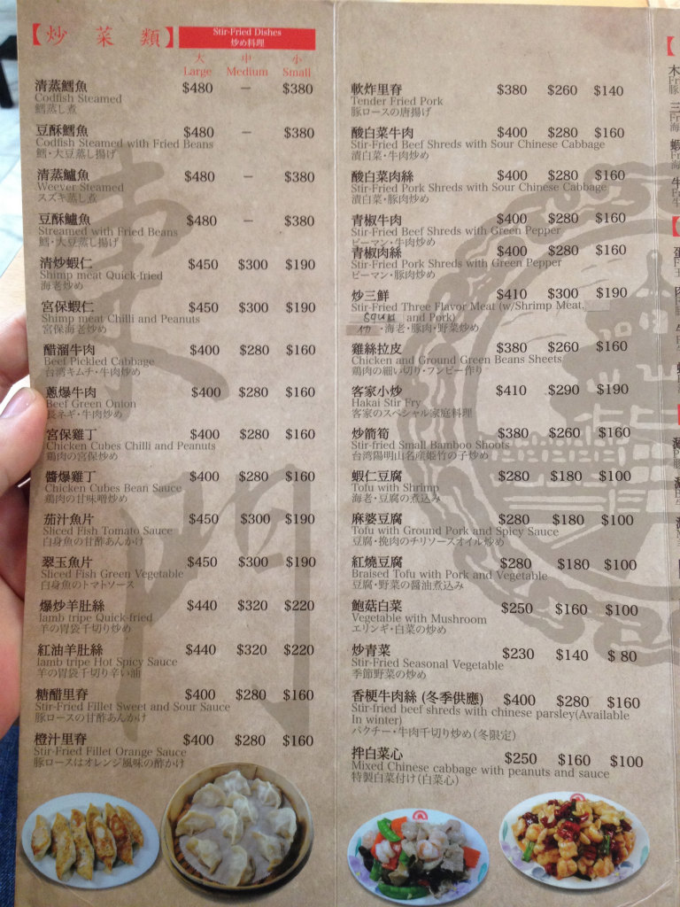 一品料理も数多くありますし、右から小・中・大と選べるところも嬉しいです。