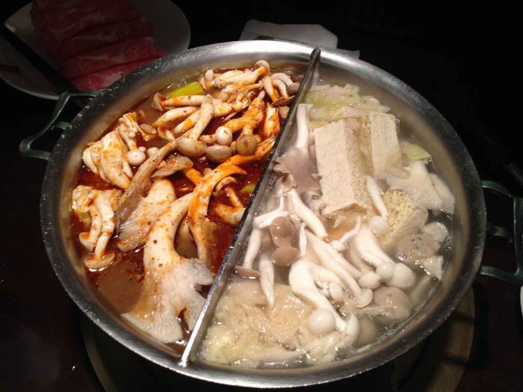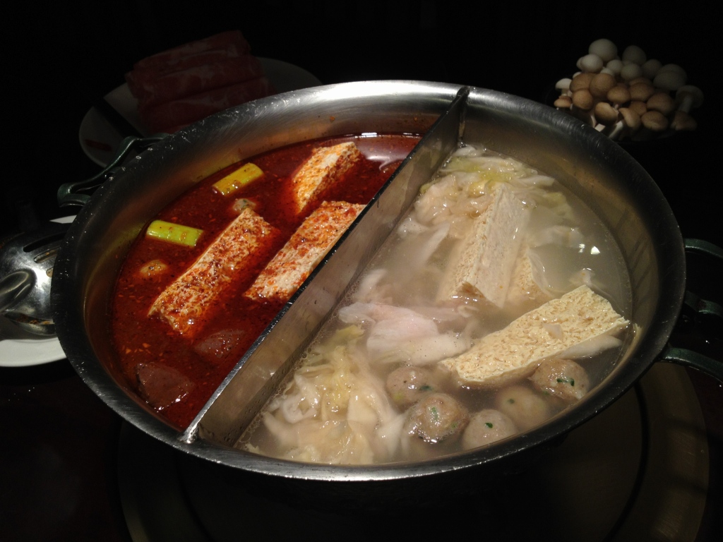 二種類を堪能できる、鴛鴦鍋(おしどりなべ)(ユンエングォ)も勿論あります。