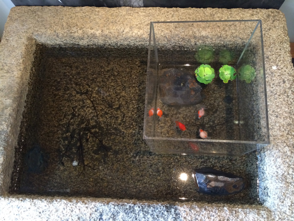 さて、熱湯を器に入れ、早速金魚を泳がしてみることにします。