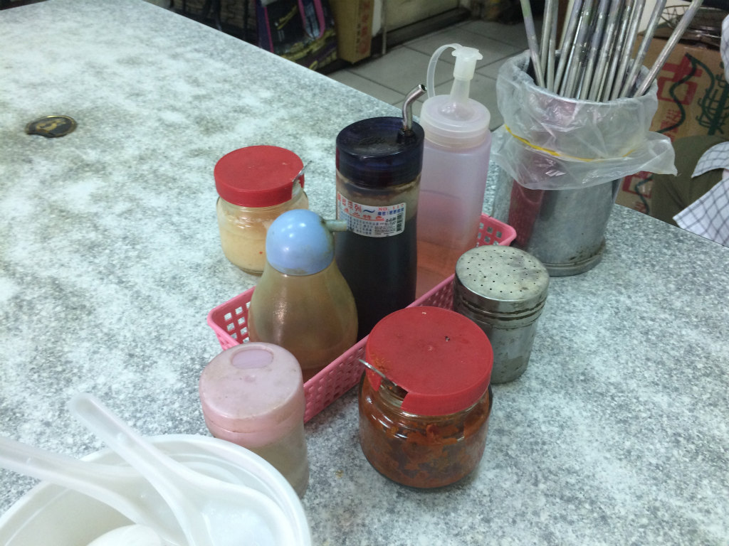 お店には酢や辣椒醤、醤油などもありますが、おろしニンニクも確認できました。