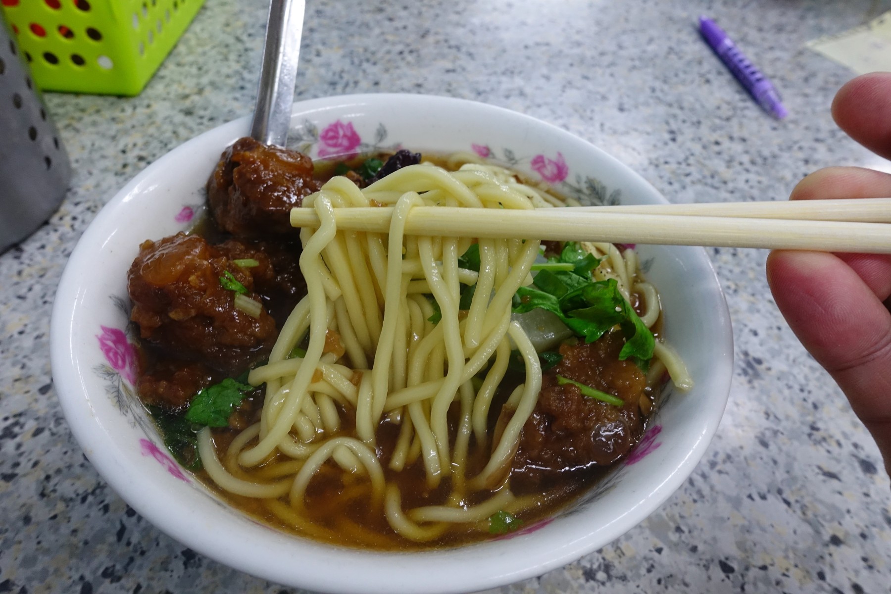 今ここで告白をすると、台湾に来てはじめて「こ、これは苦手!!!」と思ったのが、別のお店で頂いた排骨酥麺でした。舌が慣れていなかったのもありますが、独特の燻というかお香のような匂いがきつい排骨酥で、お店の方には申し訳かったのですが、たくさん残してしまいました。