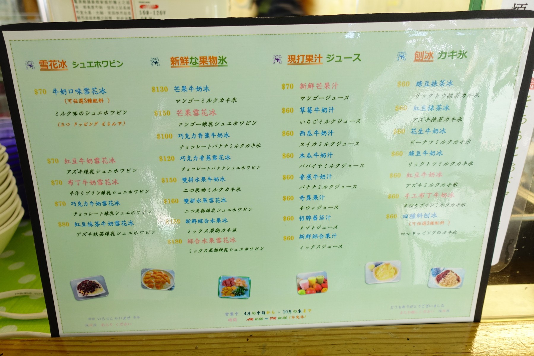 芒果雪花冰が150元、芒果牛奶冰120元と、それぞれ30元と20元の値上げです。