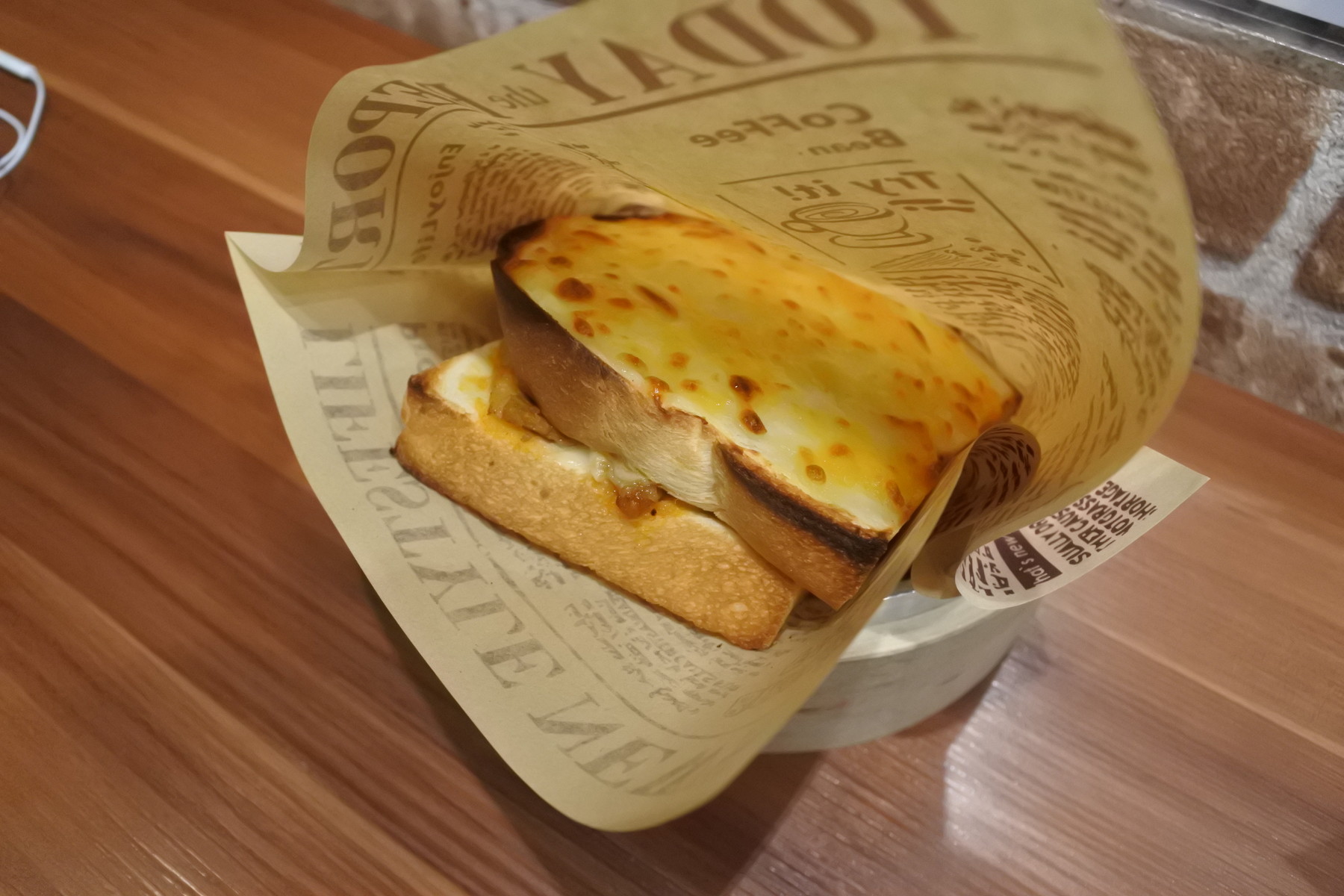 パンの外にはカリカリチーズ、中にもトロトロチーズがあり、チーズ好きの私は一瞬で恋に落ちます。また、メニューには中辣とある通り、ちょうど良いピリ辛。