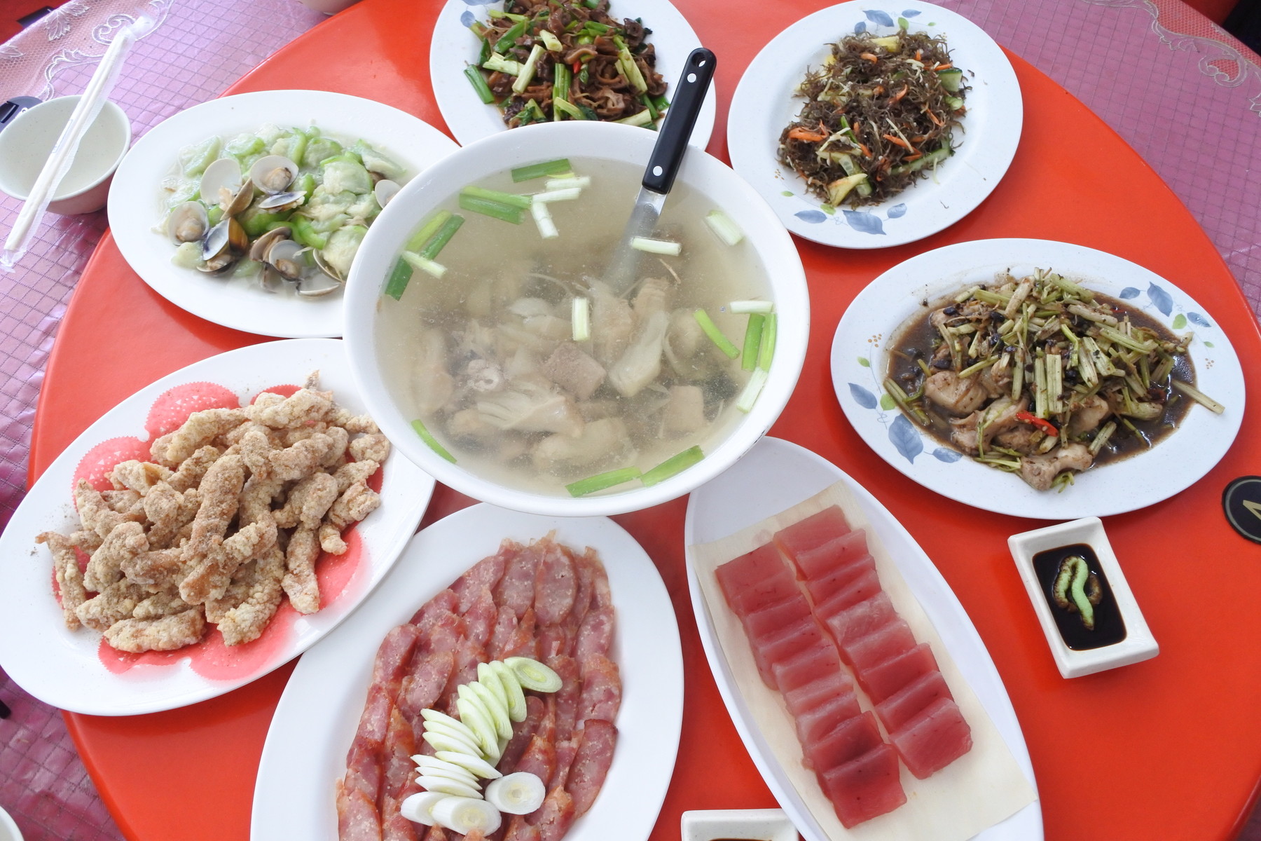 目安として、4人前で5皿のおかずとスープで1000元ほどだそうです。