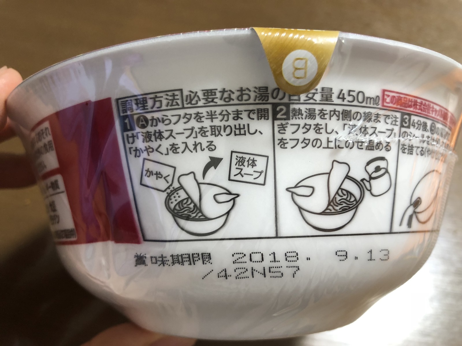 取り敢えずかやくを入れてお湯を注ぎ、4分待ちます。