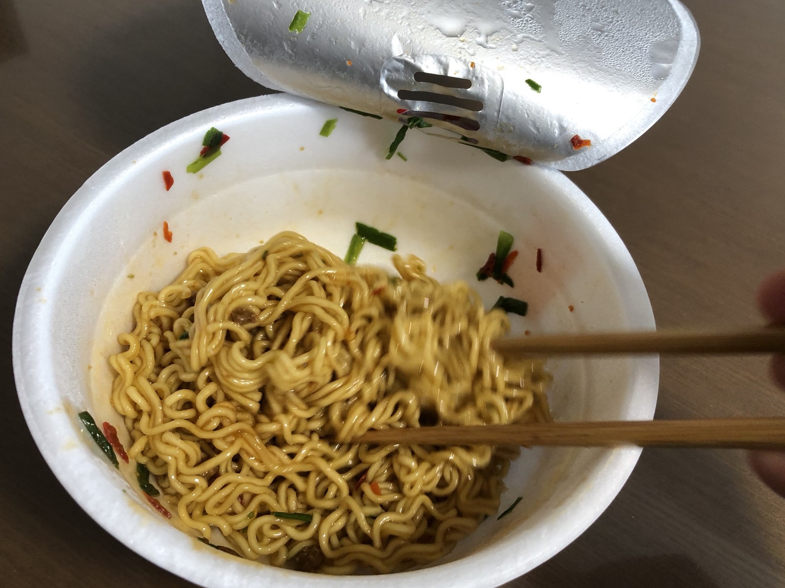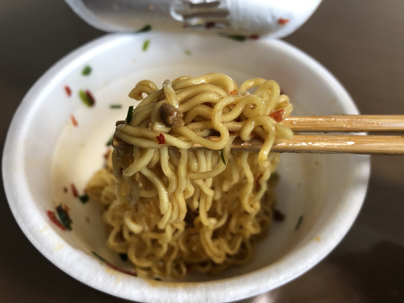 素直な感想だと、汁なしカップ麺としては油分が多いけれども美味しいです。