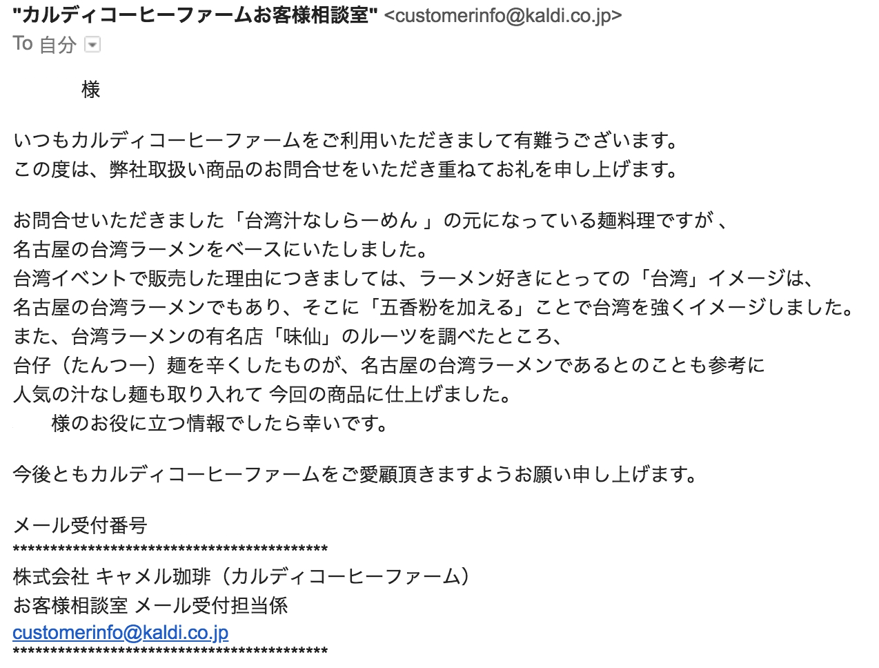 これはKALDIお客様センターへ聞いてみるしかありませんね。