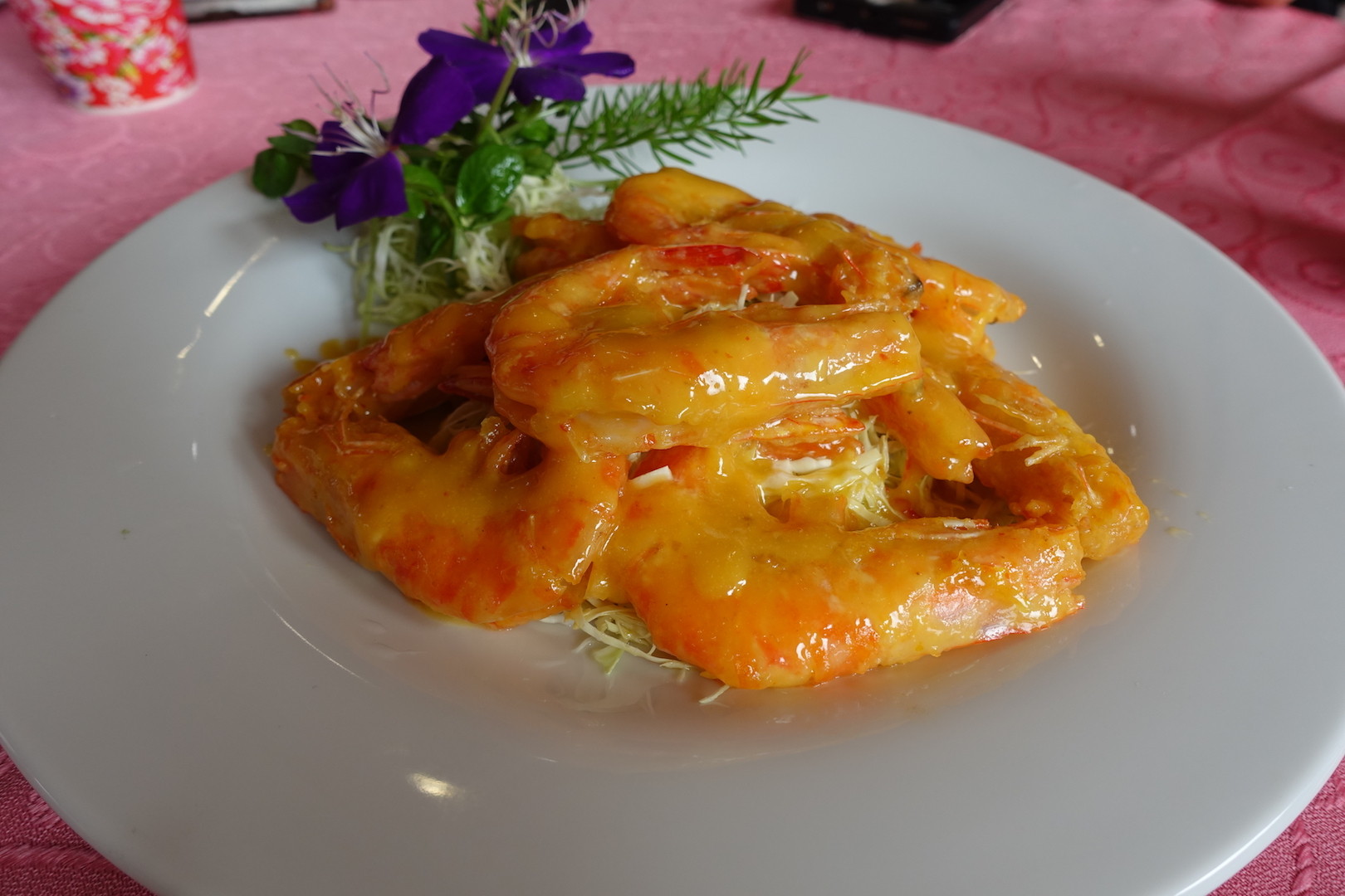 情人節でバレンタインデーのことを言うのですが、こちらの料理人が何を思ったのか、ホワイトチョコを使って仕上げた蝦ということで、客庄情人蝦と言うようです。