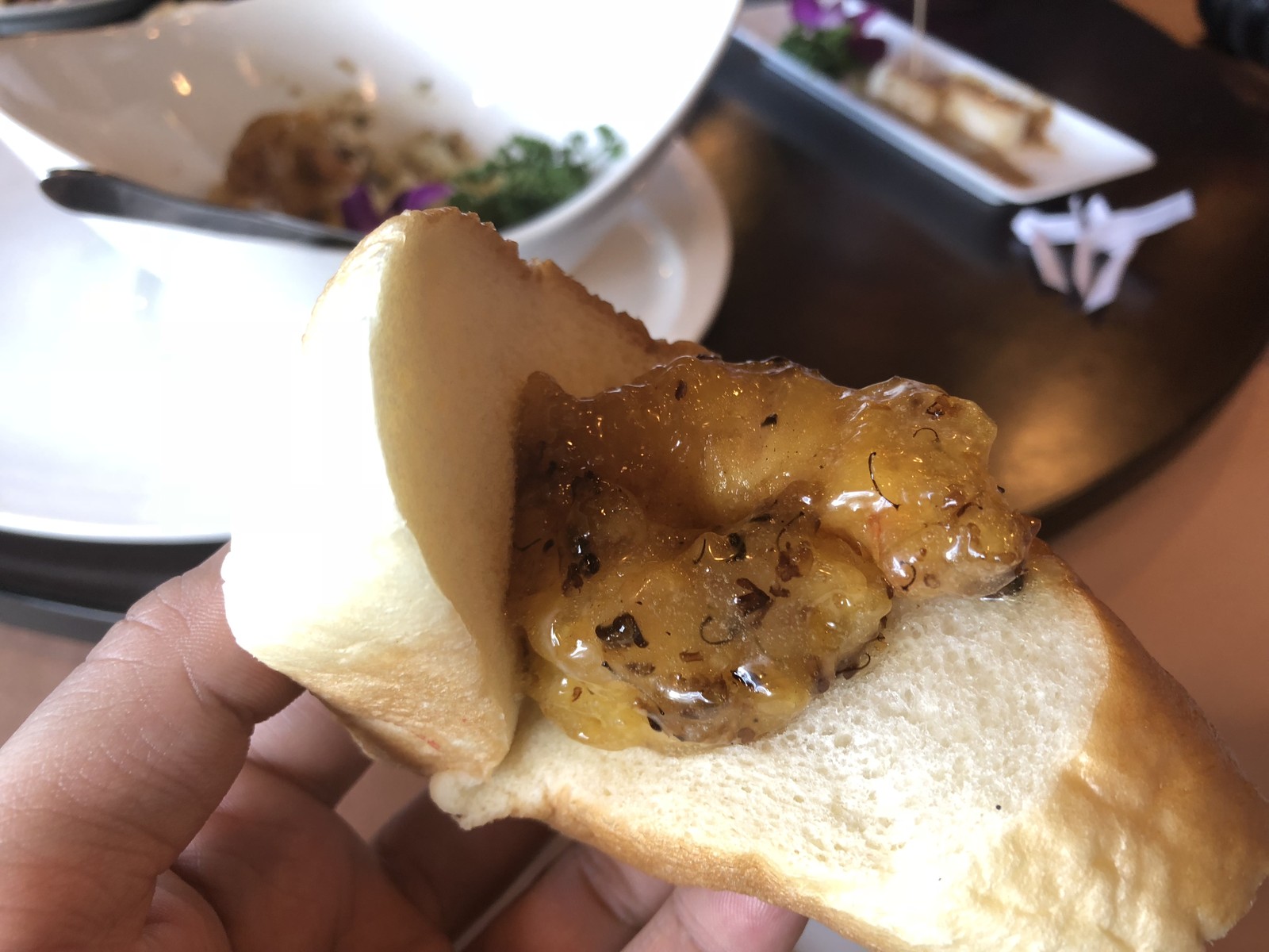 甘いソースの料理もありえるので、特に抵抗なく口にいれましたが、ホワイトチョコの甘みと蝦の旨味がなかなか良いマッチングで、美味しかったです。