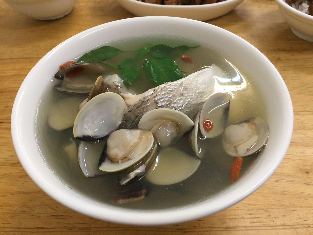 食べ台湾片手に、煉りものの入った蛤スープも堪能・・美味し〜!