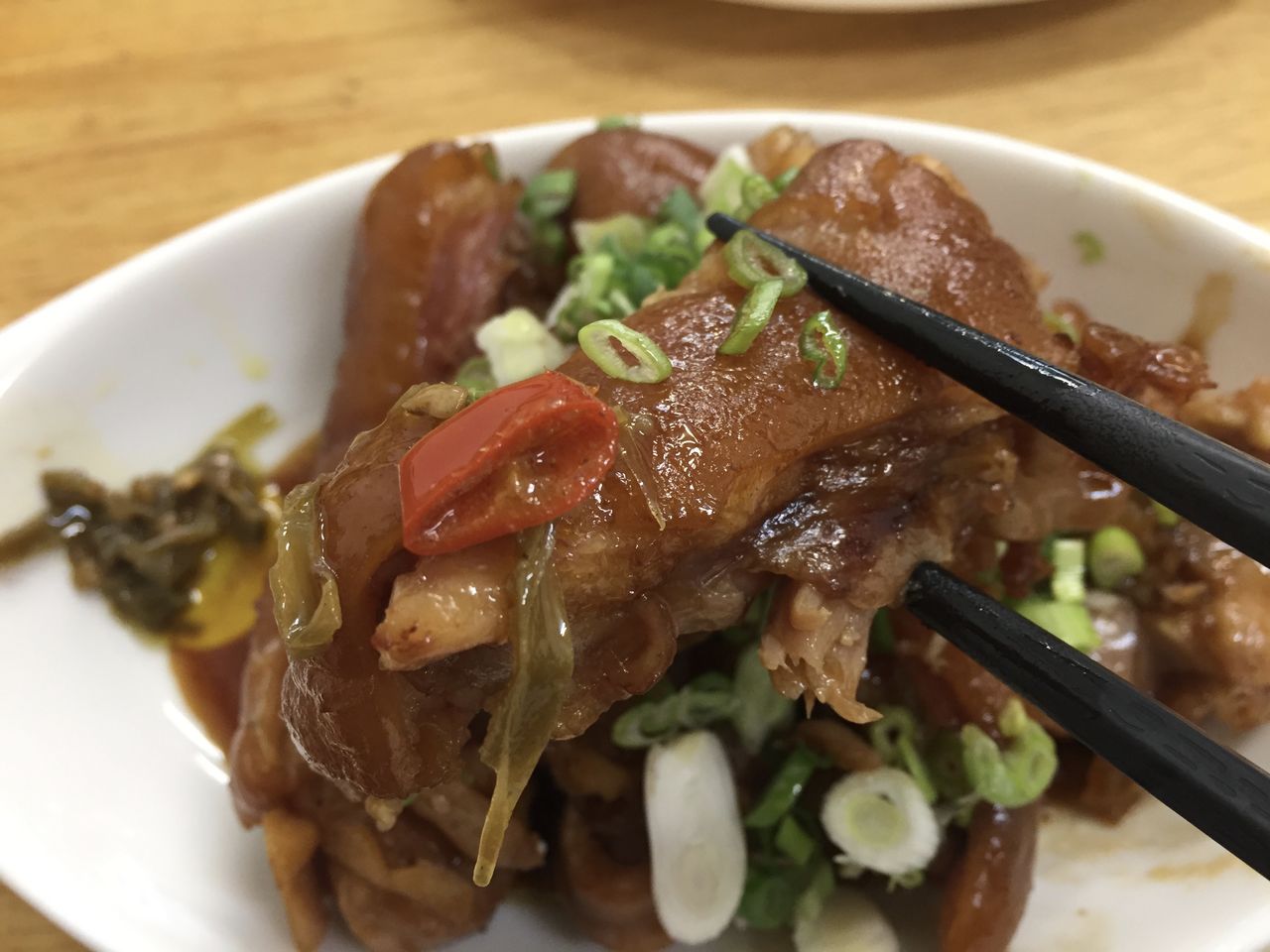 この豚足にこのお店手作りの唐辛子の調味料を加えて一緒に頂きます。