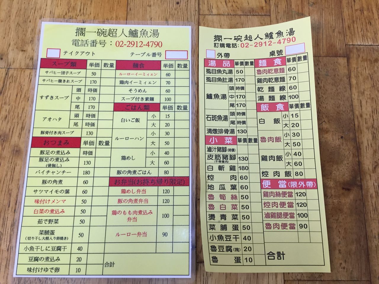 ラミネート加工された日本語メニューもありました。