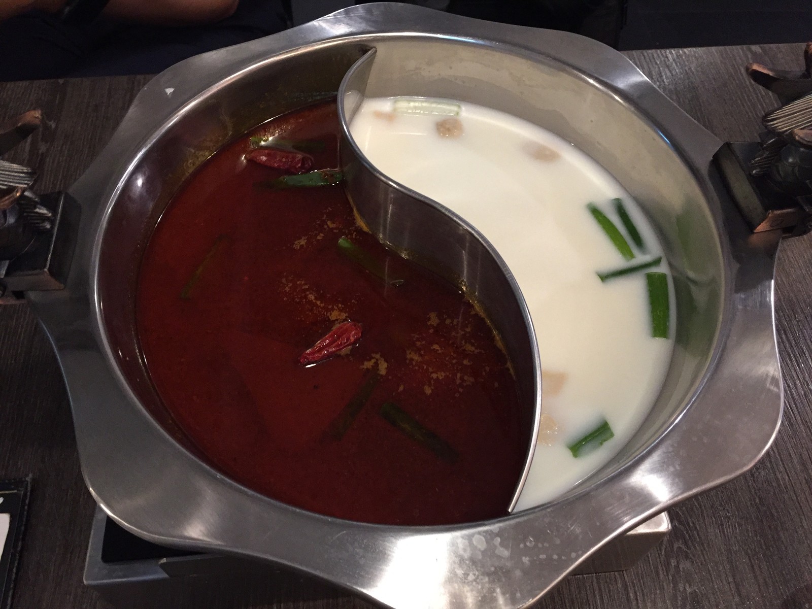 スープは、四川麻辣鍋(スゥ チゥァンマーラーグオ)と香濃牛奶鍋(シャンノンニョウナイグオ)のミルク味の二つをチョイス。