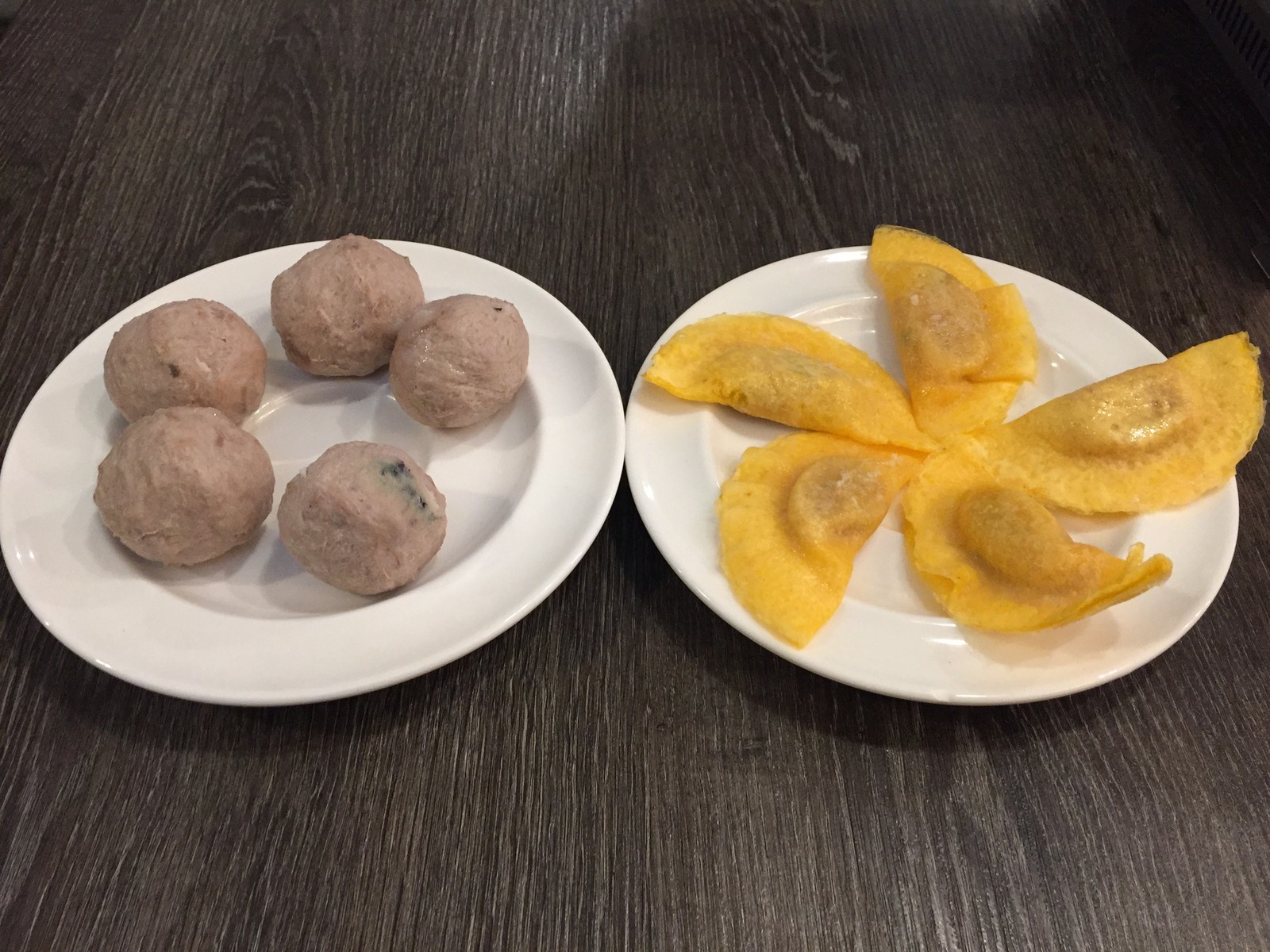 餃子と団子からは、香菇貢丸(シャングゥゴンワン)のシイタケ団子と蛋餃(ダンジャオ)の卵餃子を選んでみました。