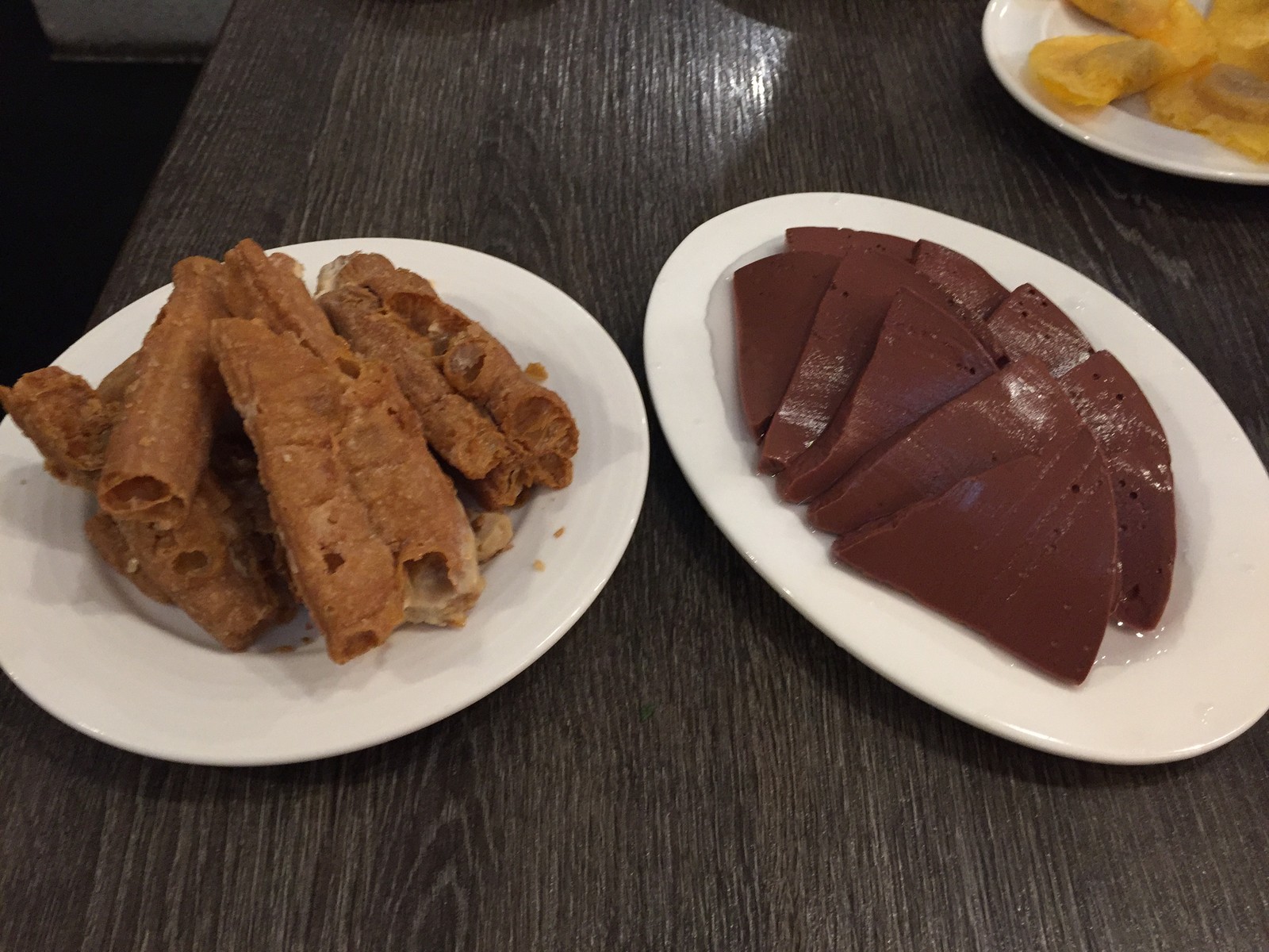麻辣鍋好朋友(お鍋の友)からは、鴨血(ヤーシエ)と老油條(ラオヨウテャオ)である揚げパンを注文。
