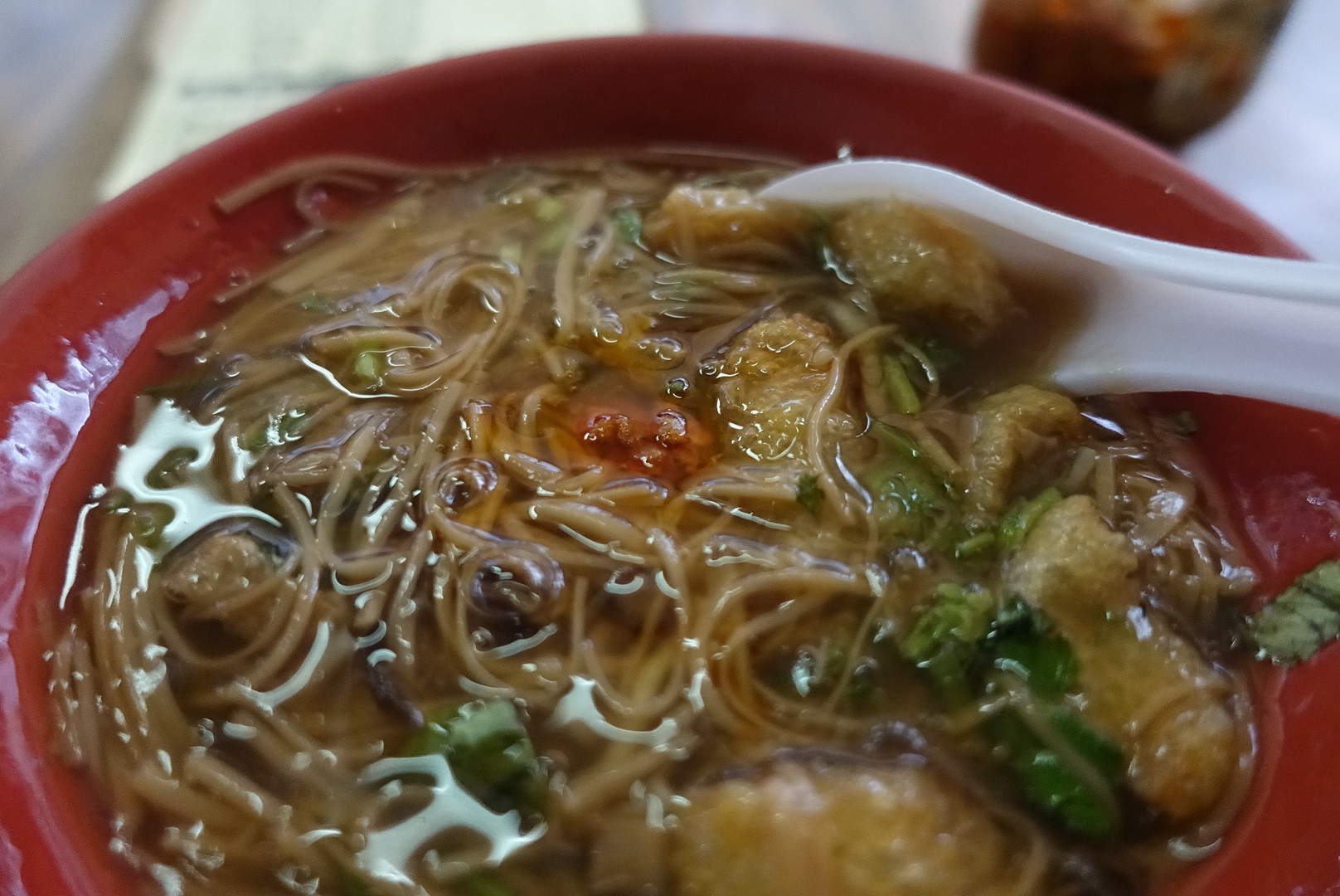 こちらは素食、つまり出汁にも魚や肉を使っていない麺線ですが、一般的な麺線でもモツが入っていない「素麺線」というものもあるので、ぜひ食べ比べてみてくださいー!