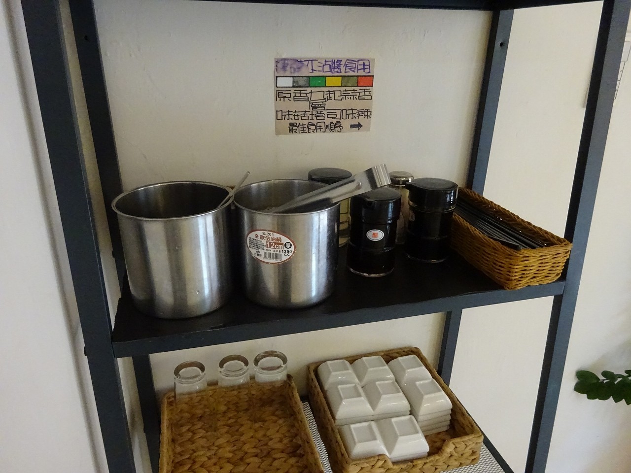 お箸や調味料類は入り口の近くにあるので、スタンバイして待ちましょう。