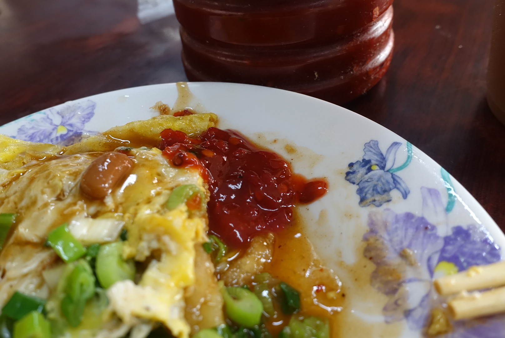 先ほどまでソースで甘かった蛋餅ですが、辣椒を纏い、さらにレベルアップ!