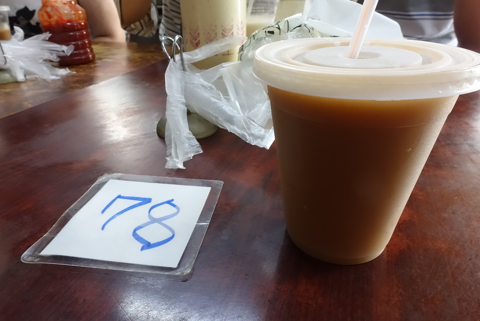 この番号札が蛋餅を作る順番札のようなもので、テイクアウトも店内で食べる人も順番に受け取るシステムです。