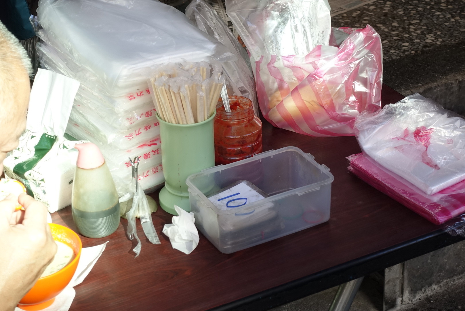 あと食べ台湾でもなんどか掲載していますが、お箸の袋は下記のようにして飛ばないように収納してくださいね。