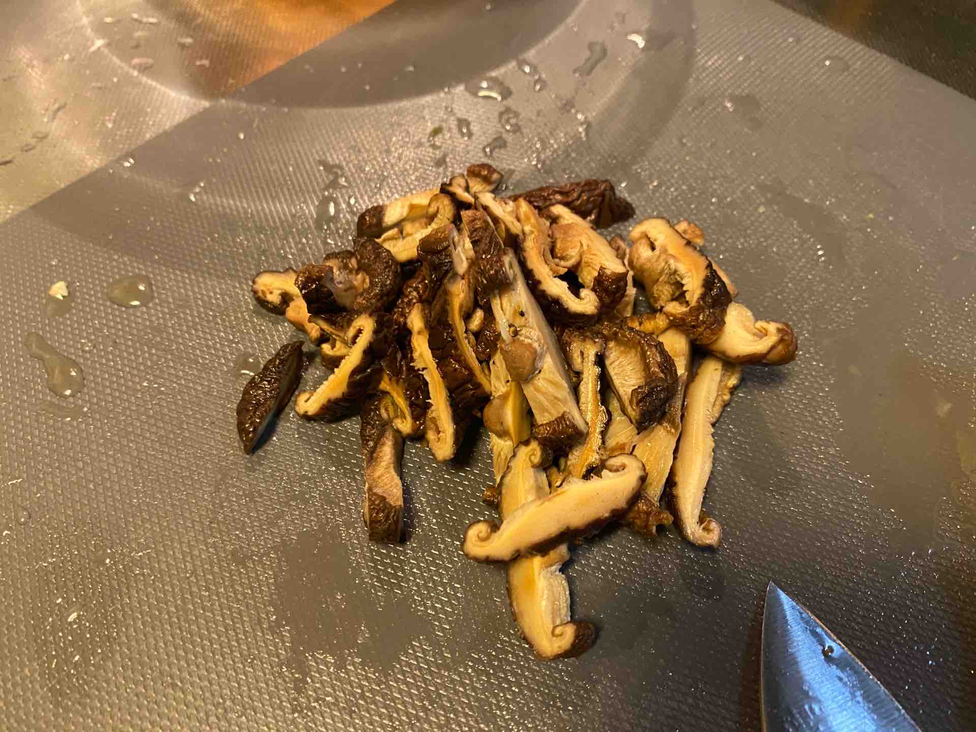 次にボウルから干しシイタケを取りだし、こちらも細かく切ります。