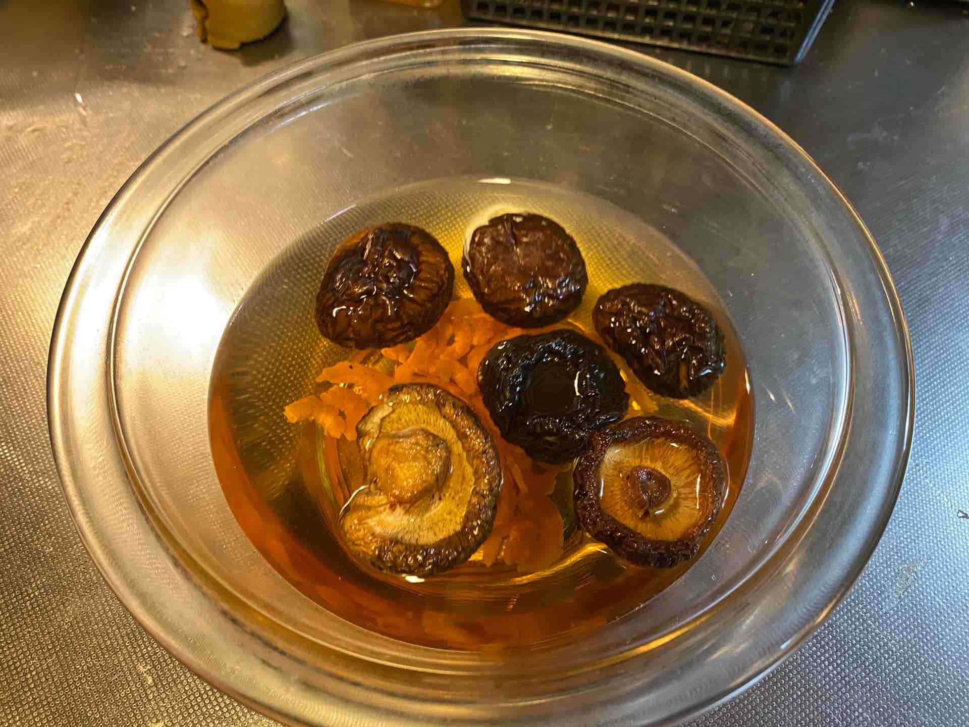 先ずは下準備として、干しシイタケと干しエビをボウルに用意します。