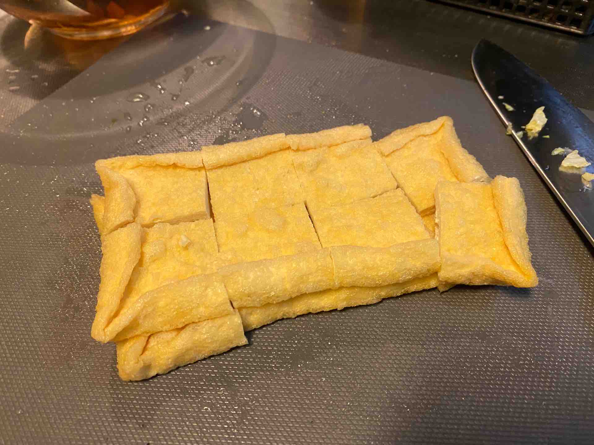 個人的に油揚げがとっても好きなので、今回は多めに2枚入れてみました。