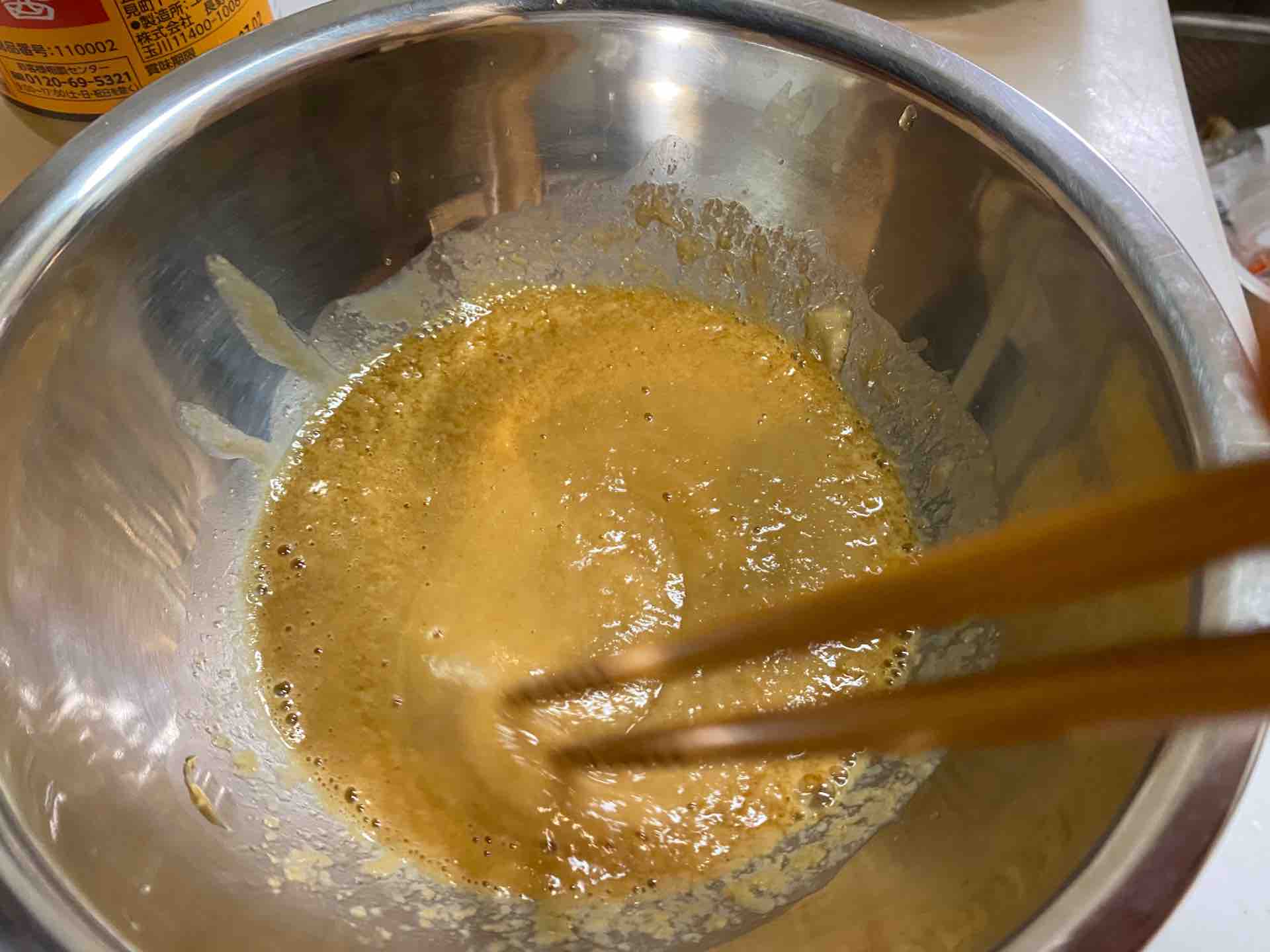 ほぐしながらタレを混ぜ混ぜしてタレの完成です。