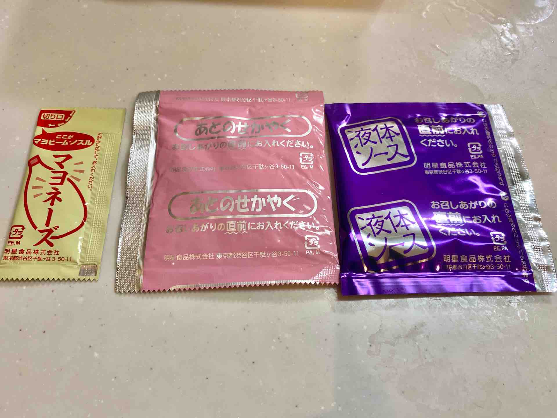 まわりのフィルムを剥がし蓋をあけると調味料パッケージが3つ入っていました。