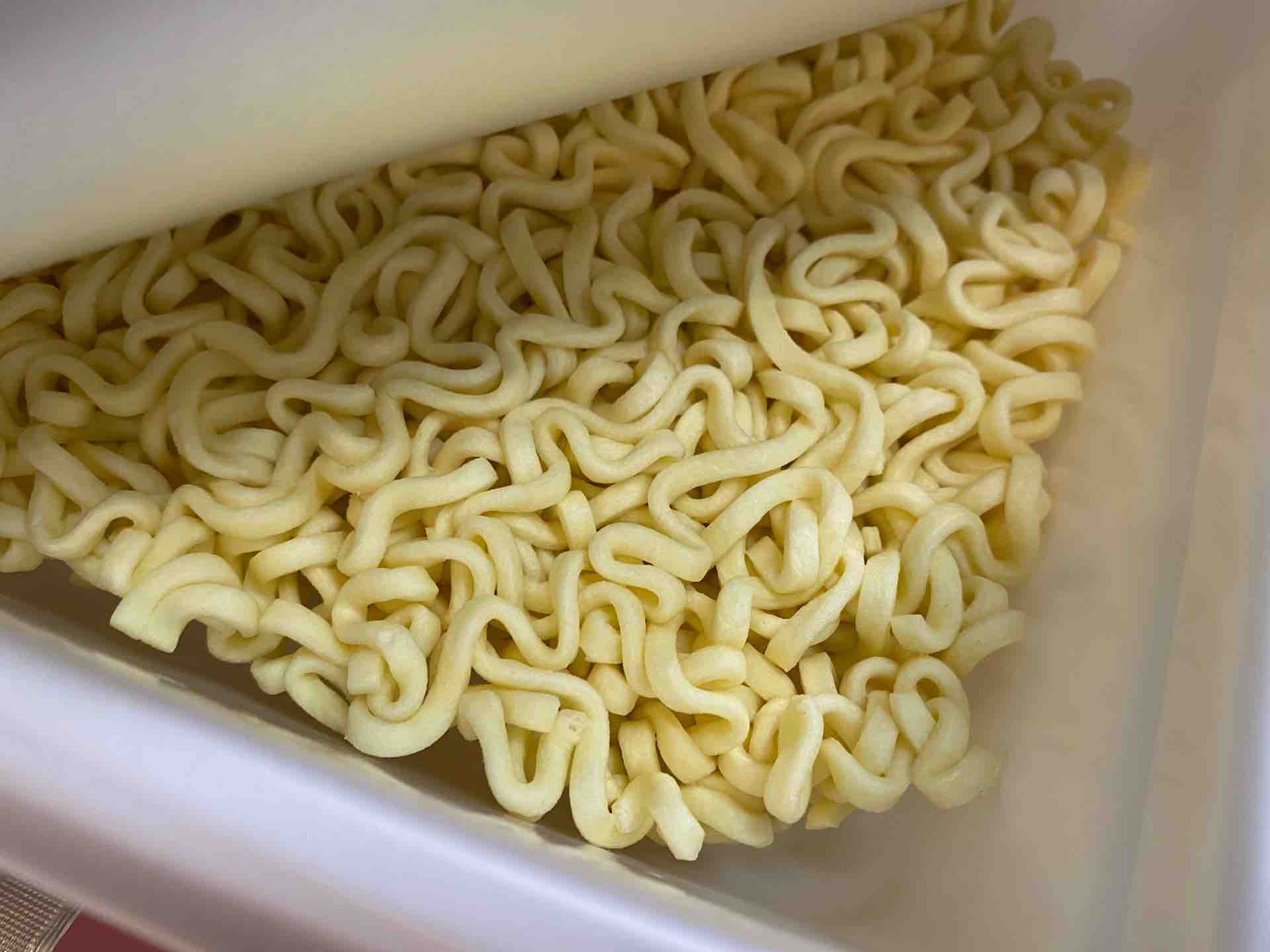 やきそばなどの一般的なカップ麺はかやくを先に入れますが、こちらは全てあとのせ。