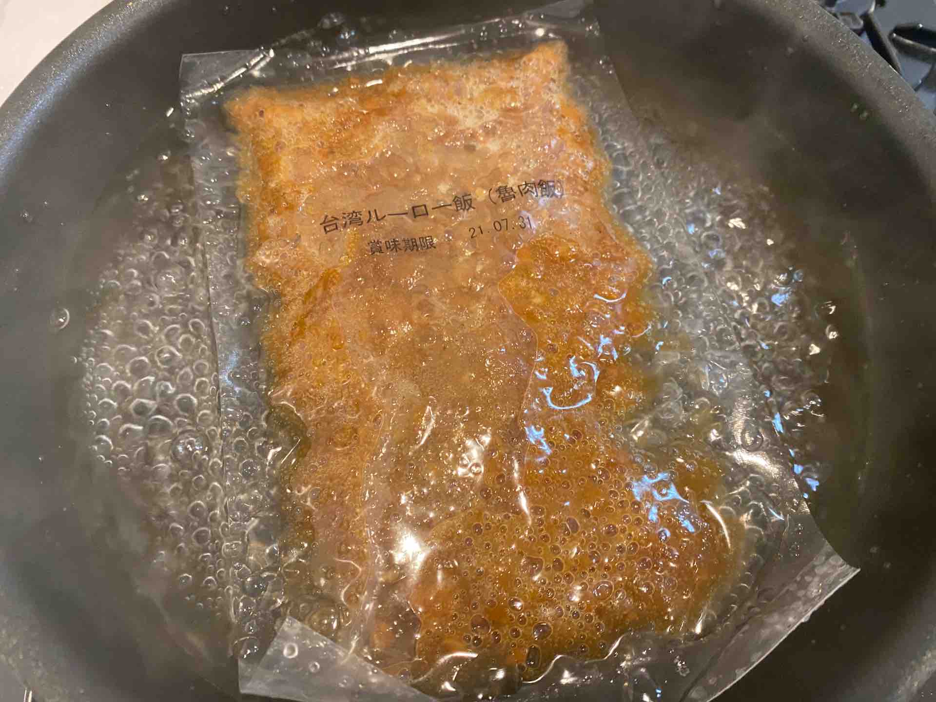 指示通り10分、沸騰したお湯に入れて温めます。