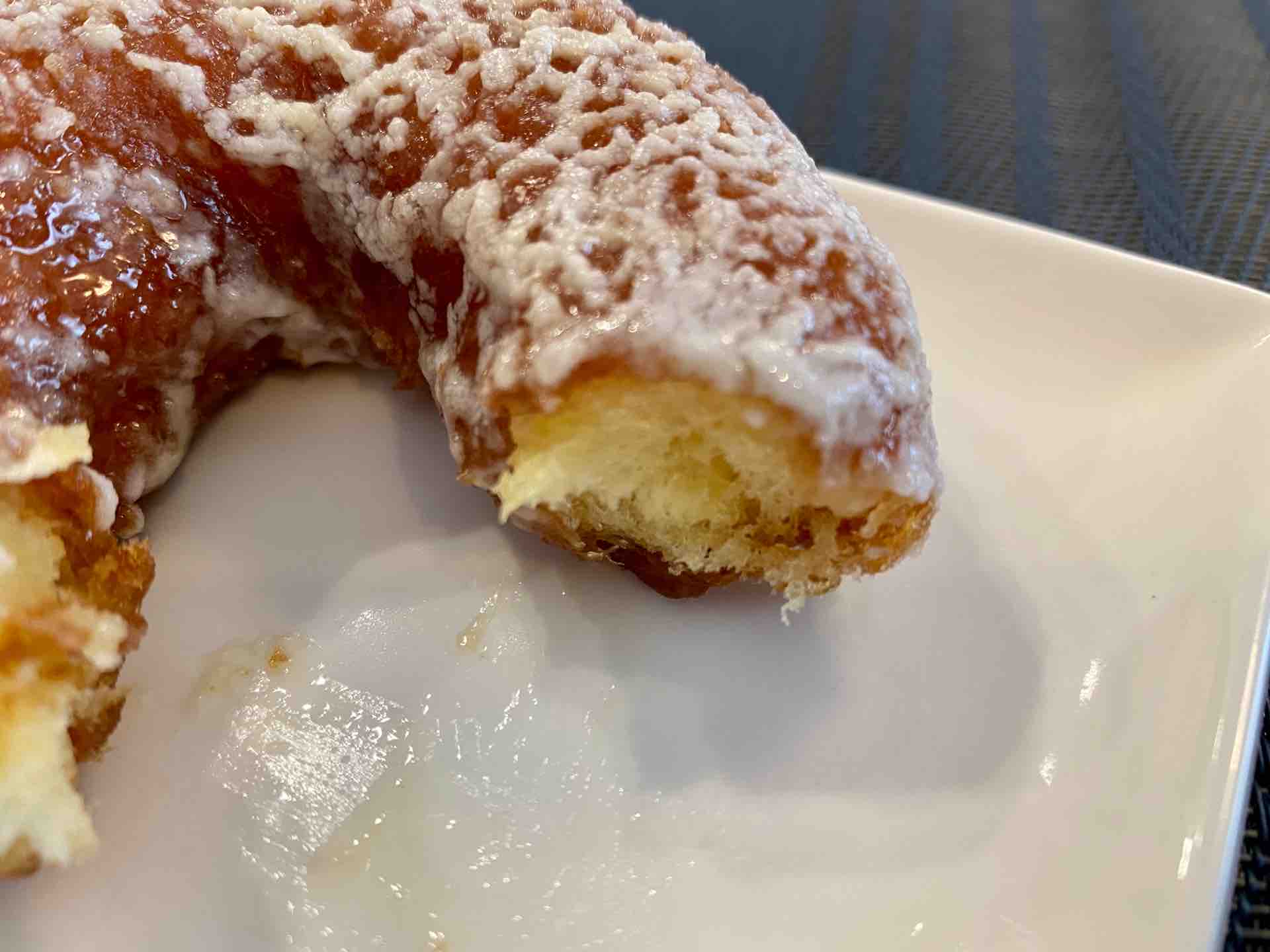 揚げたてのサクサクフワフワという感じではありませんでしたが、ふわっとさっくり感はイメージできるので、良い感じに再現できていると思います。しかしかなり甘めなので、もう少し甘さを控えめにされても良いかと思いました。食べ進めると途中で飽きが来るかもしれません。