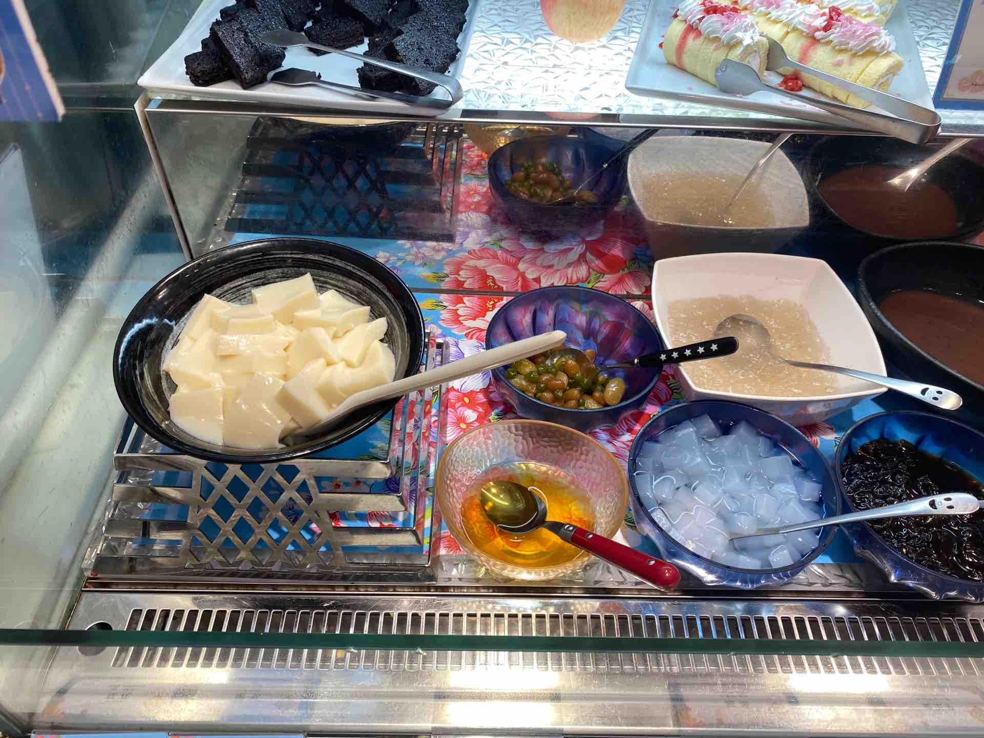 豆花は豆腐と同じようににがり、もしくは硫酸カルシウムなどを使って凝固させますが、今回の豆花はアガーなどを使っているようで、プルプルとしたゼリーに近い固まり具合の豆花です。豆花というよりは、豆乳ゼリーのような感じですかね。トッピング自体は、どれも美味しく、特に芋圓はモチモチとしており美味しかったのですが、ジャスミンシロップというものが置いてありましたが、ちょっと違うんですよね。前述の通り、キビ砂糖シロップと一緒にいただくと、より豆花の味わいが楽しめるので、ぜひこのシロップは置いていただきたいです。