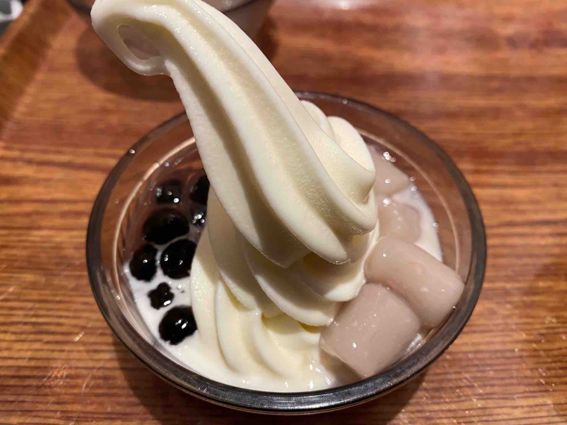 タピオカと芋圓を無理やり乗せてみましたが、アイスクリームは万国共通のものなので、強いて台湾風にするのであれば「タピオカミルクティーアイスクリーム」的なものを出した方が良いかもしれませんね。