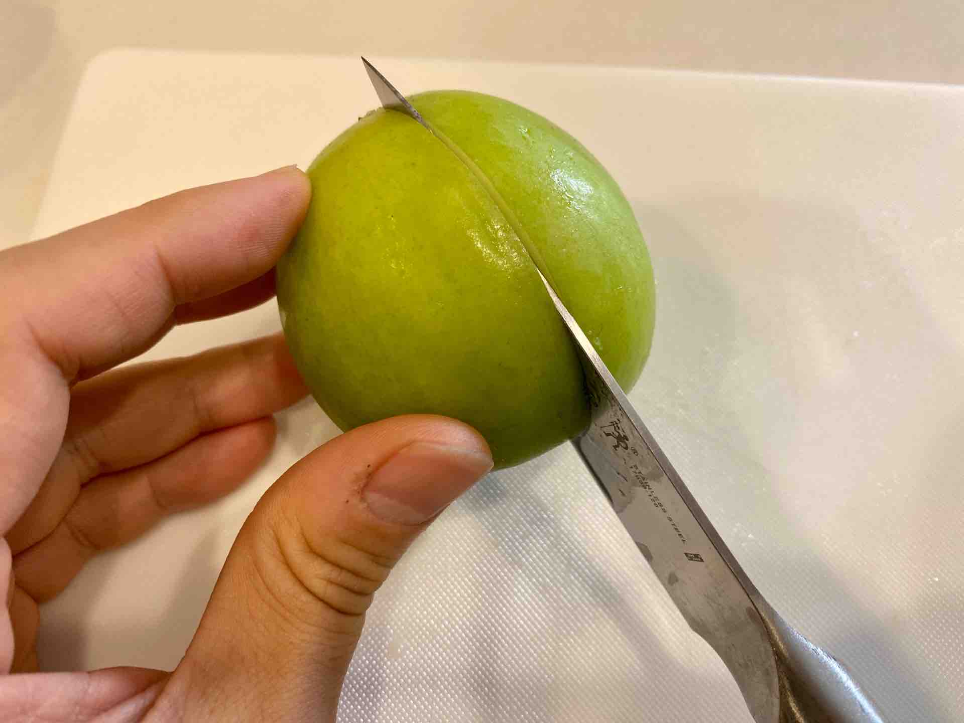 食べ頃のナツメを選び包丁でぐるりと一周。