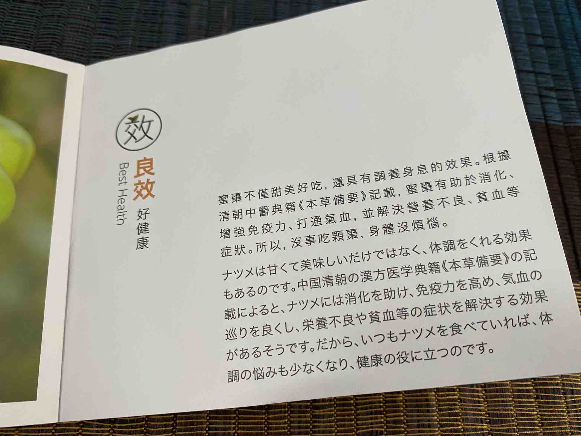 同封されている説明書に、ナツメのことがいくつか記載されていましたのでご紹介します。