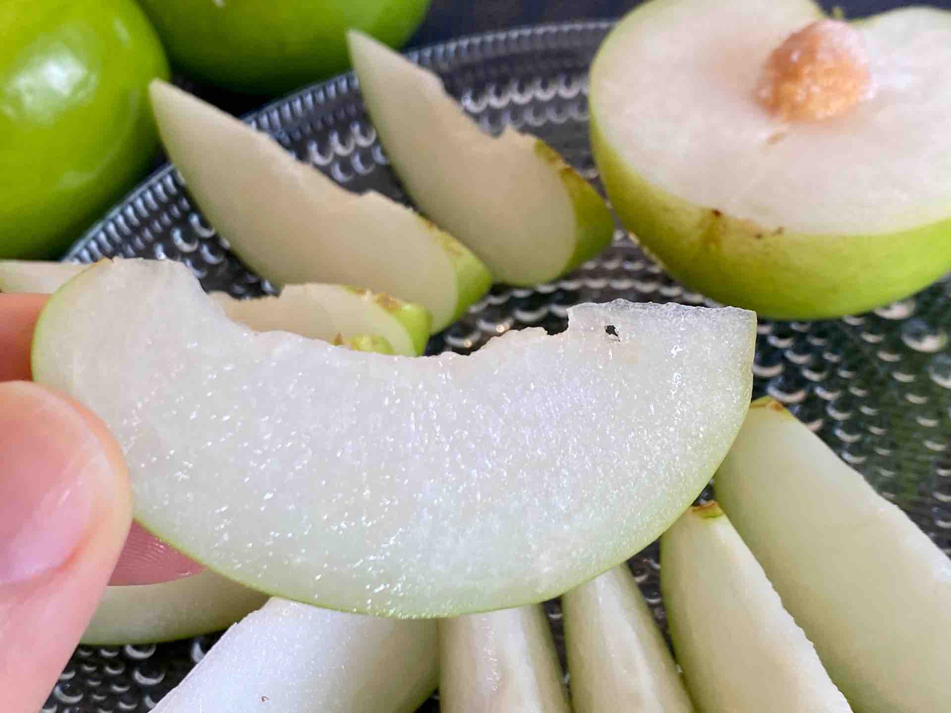 前述の通り食感は梨に似ており、味も梨っぽいのですが、糖度は少し控えめです。