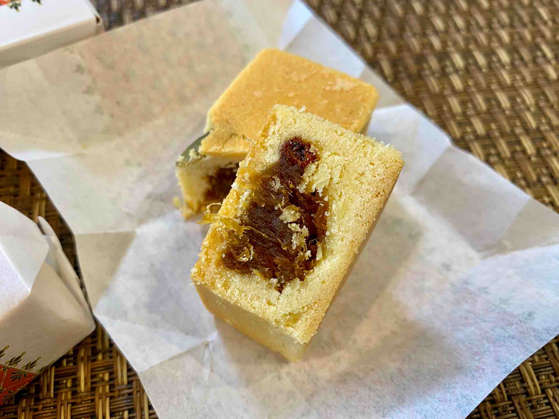 店員さんの説明では「普通のパイナップルケーキとは違い、カボチャの種やクコの実など、漢方を取り入れた特別なパイナップルケーキなんですよ」とのこと。
