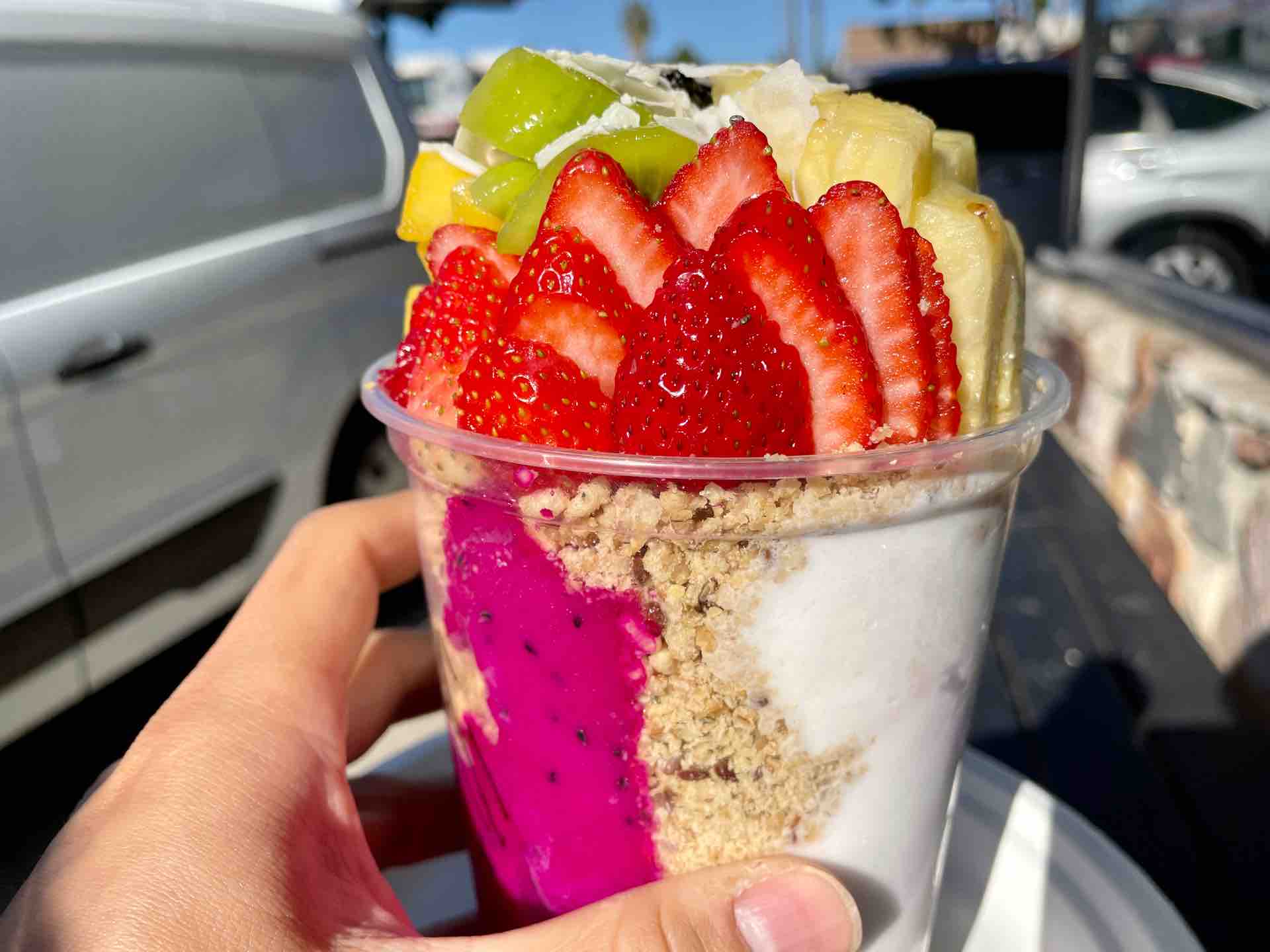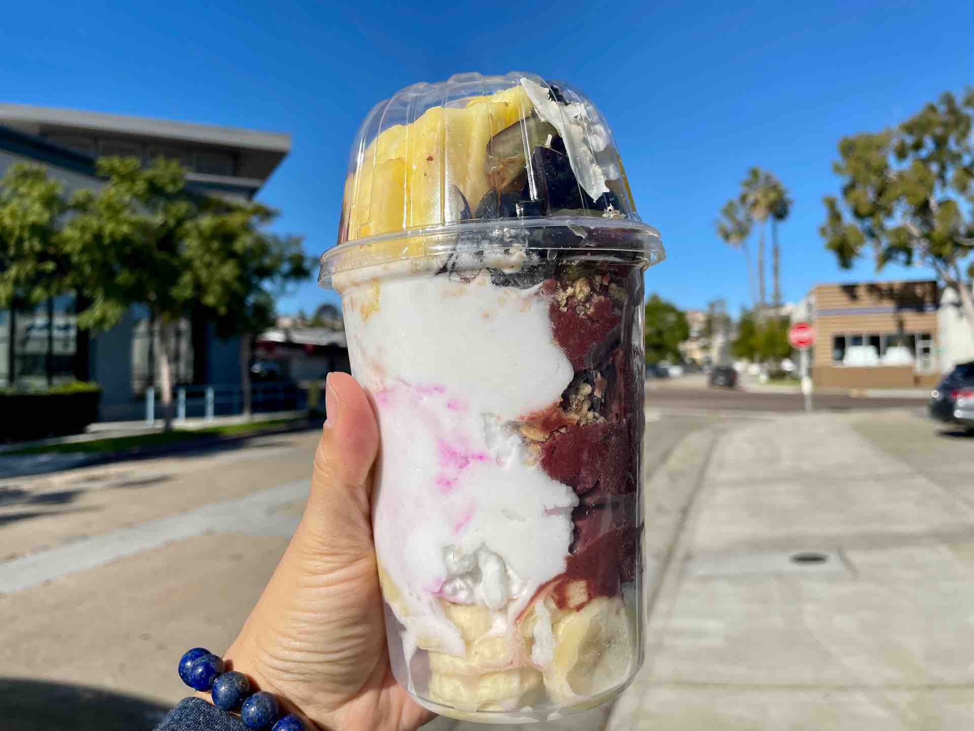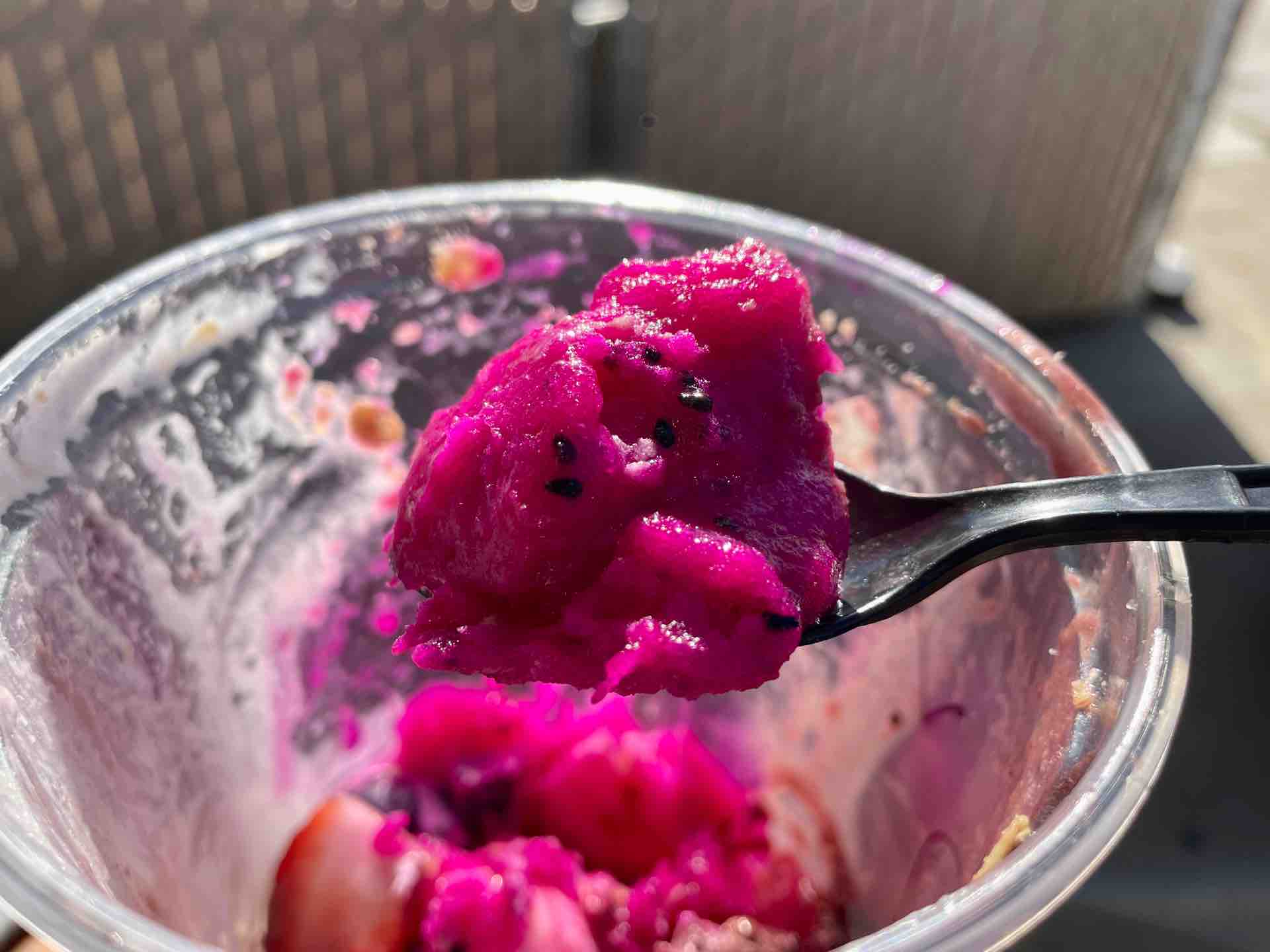 アサイー以外にココナッツやドランゴンフルーツのスムージーも入っています。