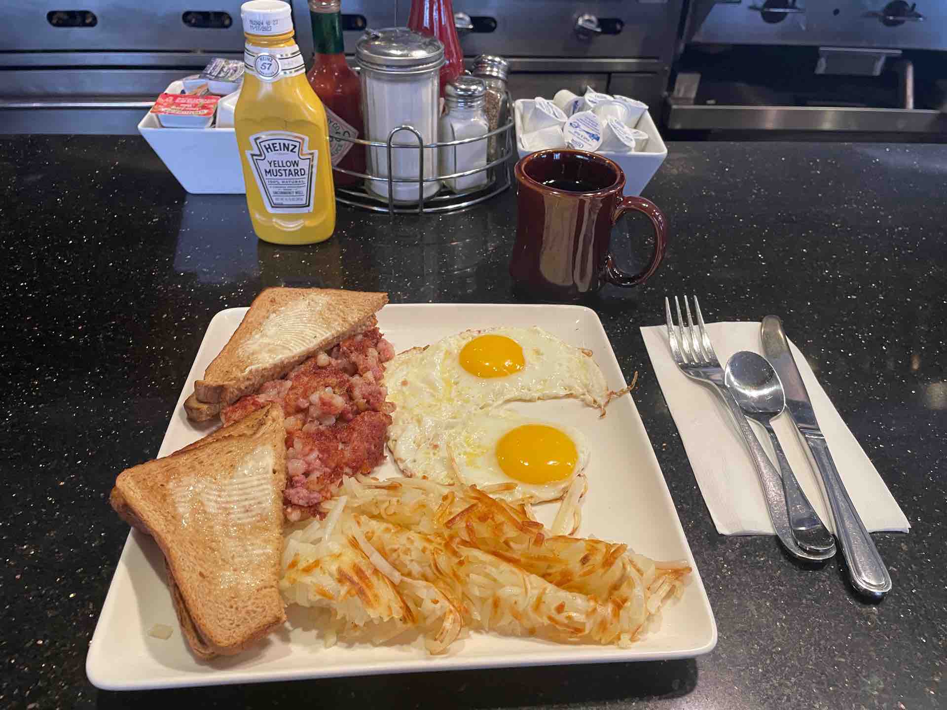 corned beef hash and two eggs $18.95