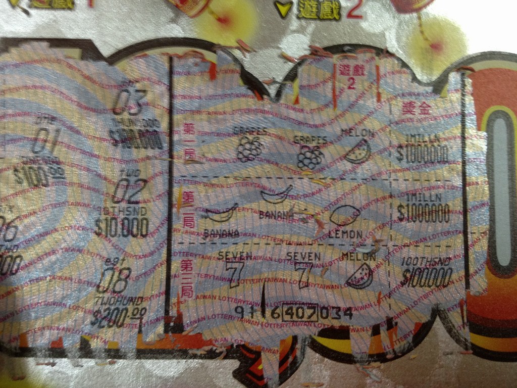 台湾彩券 刮刮楽(台湾のスクラッチ宝くじ)1000元編