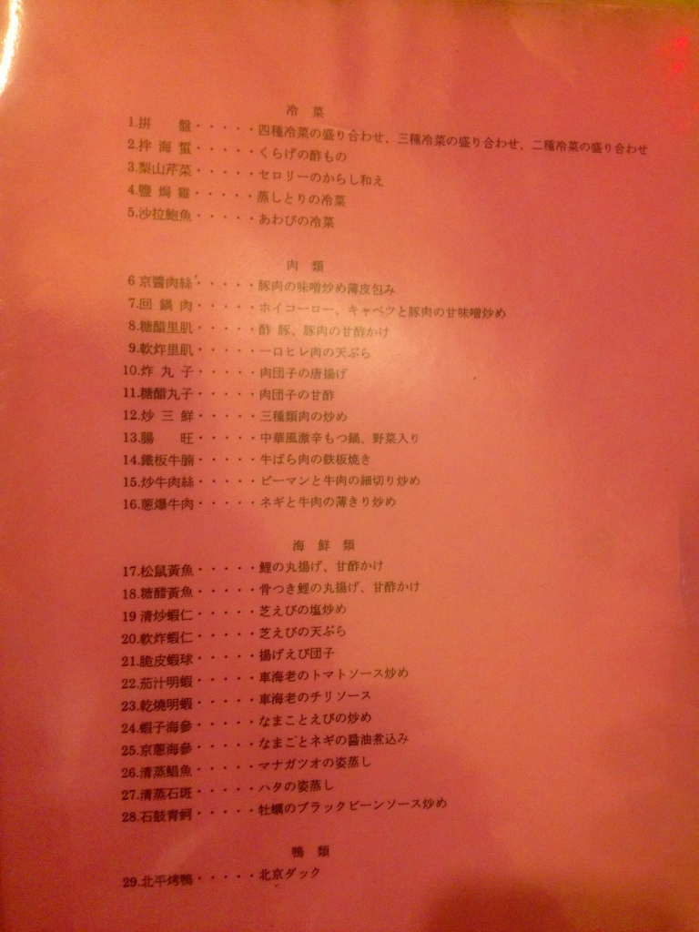 さてメニュー。