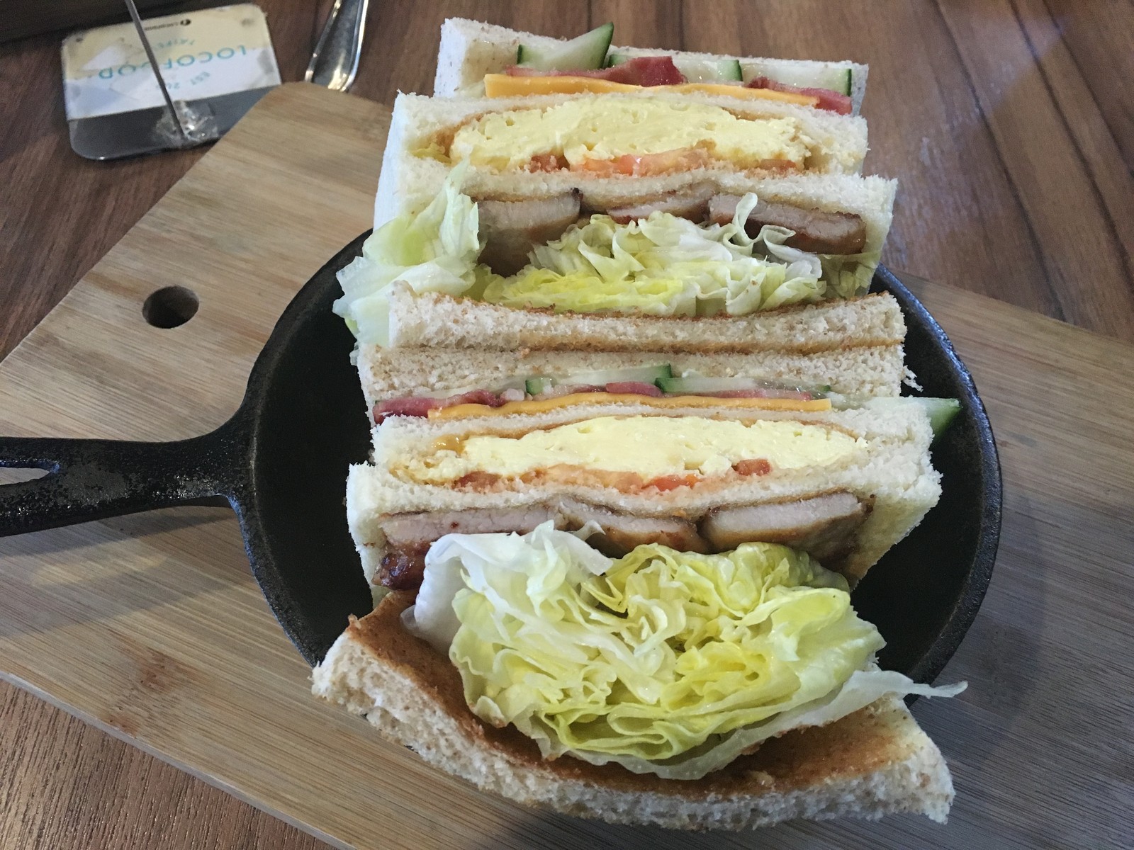 台湾のサンドイッチ、美味しいんですよねー!パンも良い感じに焼けており、豚肉のジューシーな感じも美味しく、とってもボリューミーでした。