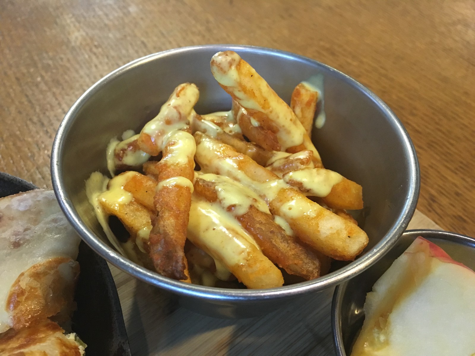 カリッカリに揚がった美味しいポテトに、マスタードと蜂蜜のソースが掛かっています。
