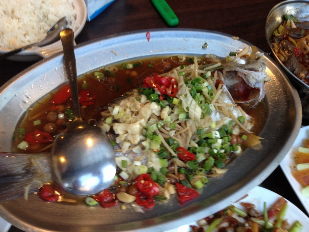 お腹の中に大量のニンニクとネギ入れ込み、胡椒の味付けで焼き上げているようです。